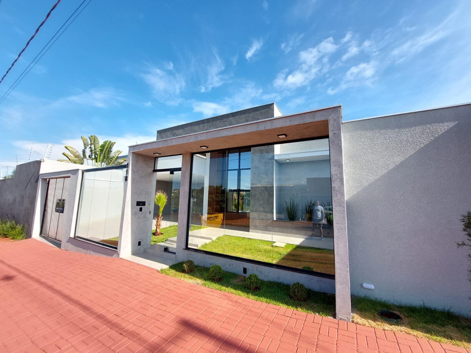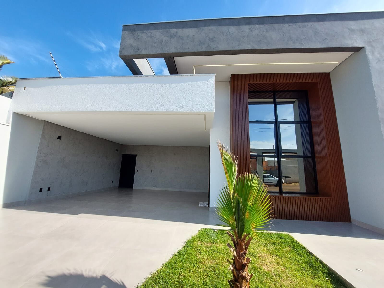 Fachada com detalhes em ripado de alumínio;